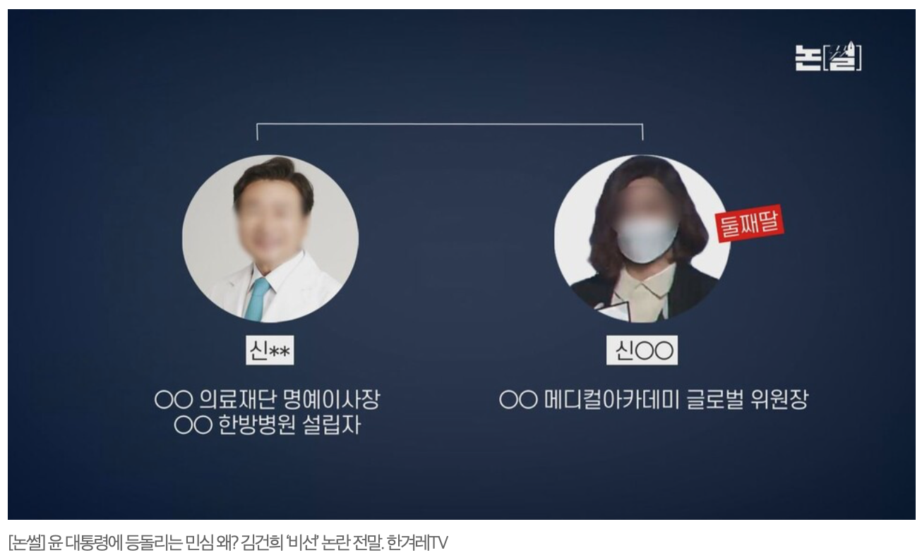 회사를 운영하면서 국제교류 행사 등을 기획·주관했기에 전문성이 있다는 설명을 두고도 추가적 의문이 제기됐다. 신씨는 유명 한방의료재단 이사장의 둘째 딸로 미국 유학을 다녀와 이 의료재단 소속 의료교육기관인 메디컬아카데미 글로벌위원장을 거쳐 지난 4월까지 계열사인 한방건강업체 대표로 일해왔다. 인터넷에 올라온 기업 소개를 보면, 이 회사는 건강기능식품 수입 판매가 주요사업이며, 신씨는 ‘아버지 소유 한방병원 내 제품판매 샵, 사내 카페테리아 등의 운영’을 맡고 있다고 돼 있다. 이런 정도의 회사를 운영하면서 국제 행사 기획에 전문성을 갖췄다고 할만한 지 의문이나, 대통령실은 실제 몇차례나 어떤 규모의 국제 행사를 치렀는지는 전혀 설명하지 않았다.