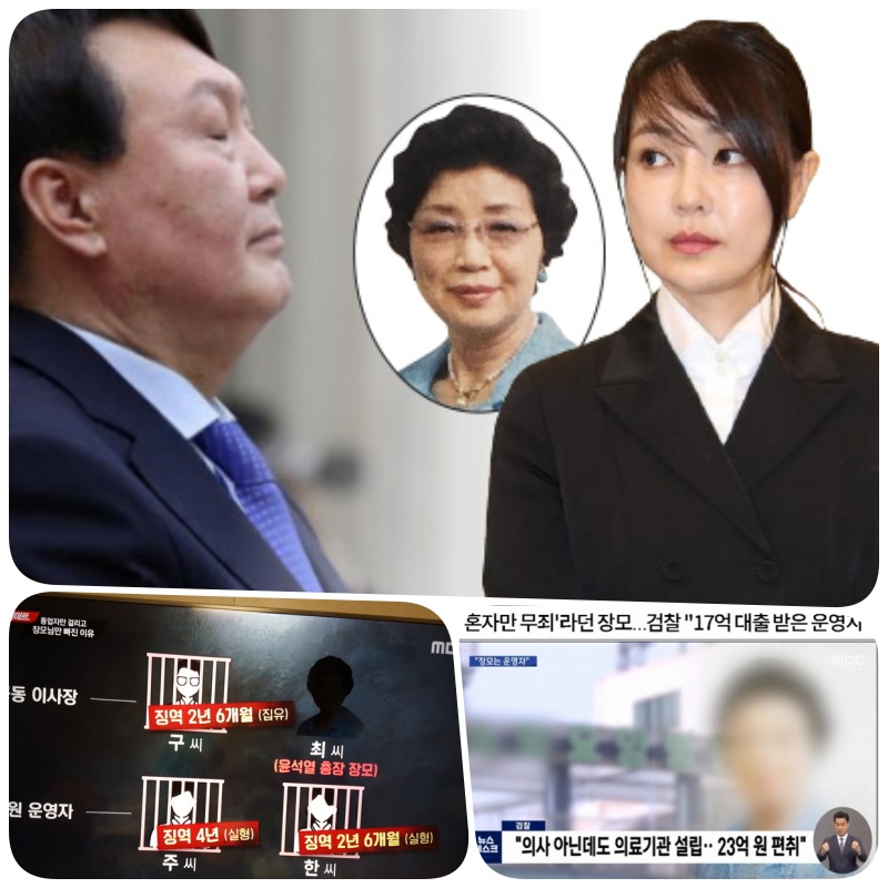 두번째 소개한 의료법 위반과 요양 급여 부정 수급과 관련된 사건에서 유일하게 무죄를 선고 받은 사람 최은순은 다들 알다시피 윤석열의 장모이다. 2015년 다른 범죄 동업자들은 모두 수사 대상이 되어 조사를 받고 2017년에 실형을 선고 받았지만 윤석열 장모 최은순만 수사 대상에서 빠졌다. 그 이후에도 지속적인 문제 제기에 처음 수사를 시작한지 6년이 지난 2021년 3년을 구형하였지만 이마저도 2심에서는 무죄로 판결났다.