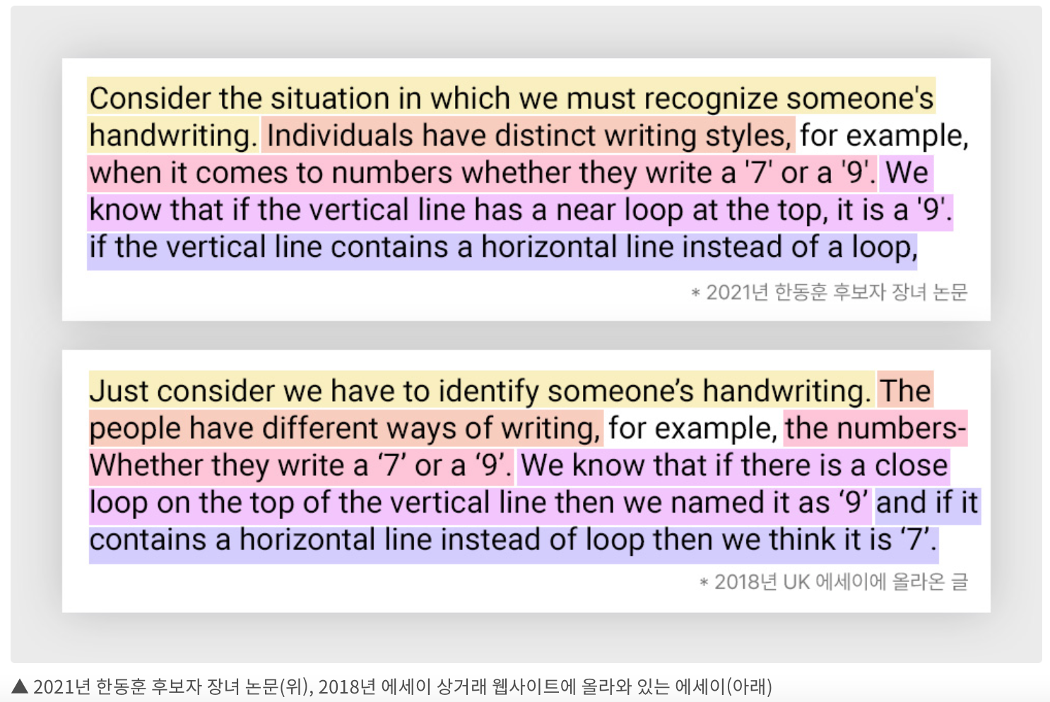 2018년 UK 에세이 사이트에 올려진 글과 한동훈 후보자의 장녀가 쓴 논문을 더 비교해보자.