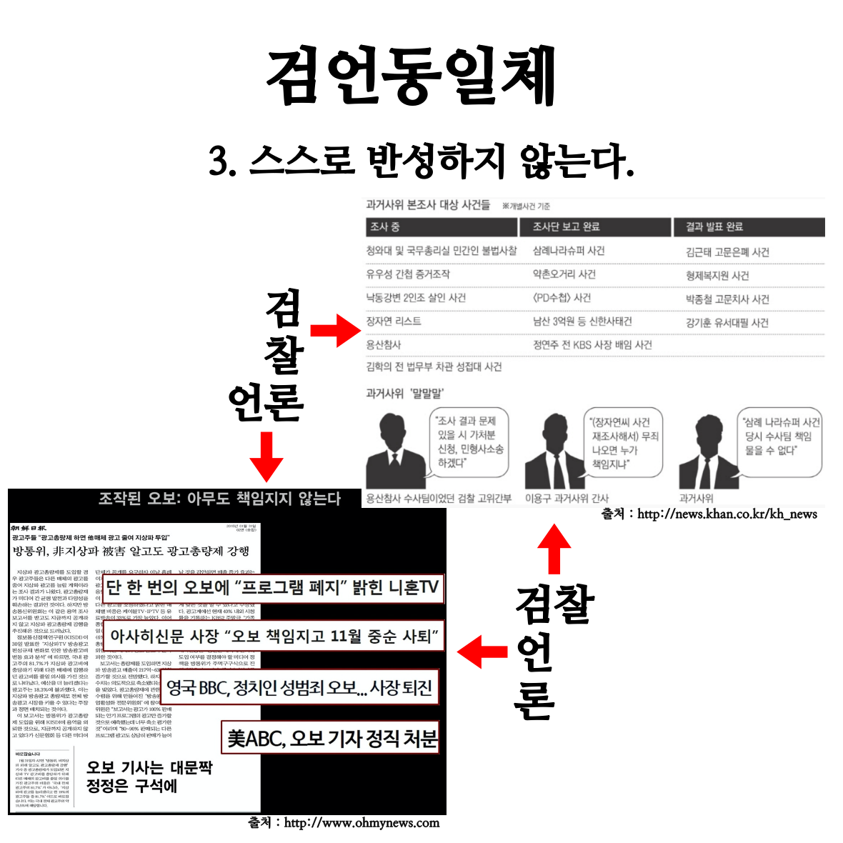 검찰은 잘못된 수사로 인해 피해자가 발생해도 스스로 사과하거나 반성하지 않으며, 언론 역시 오보를 해서 누군가가 불합리하게 피해를 입어도 스스로 사과하거나 반성하지 않는다.
