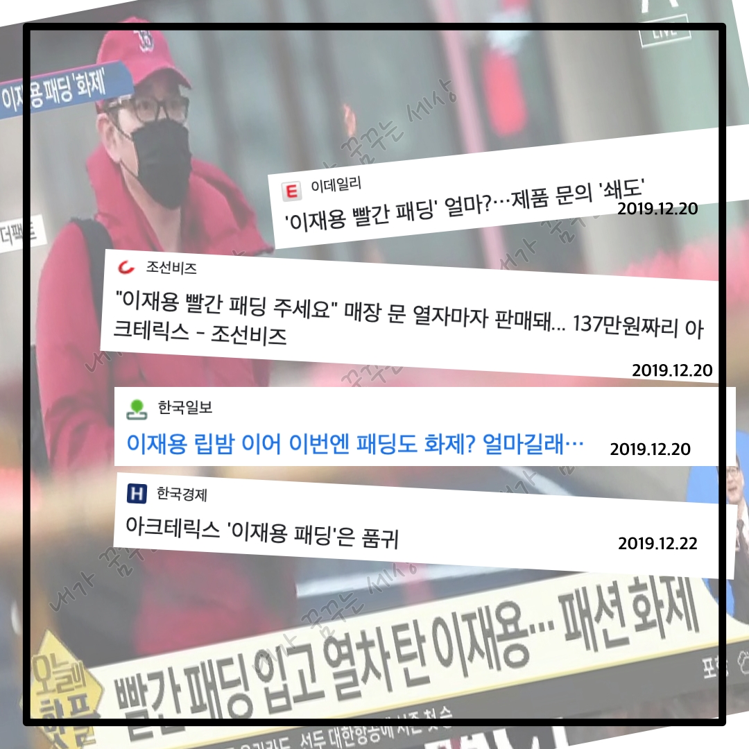 2019년 12월 언론은 '이재용 패딩' 기사를 연일 보도했다. 당시 이재용 삼성 부회장은 삼성물산과 제일모직의 합병과 관련 배임과 자본시장법 위반 혐의로 고발된 이 후 삼성바이오로직스 회계사기 혐의와 관련해 추가 고발된 상태로 범죄 혐의를 입증할 새로운 사실과 증거들이 언론 보도와 재판 등 관련 기관에 의해 밝혀지고 있는 상황이었다(2019년 12월 12일, 연합뉴스). 하지만 일부 언론을 제외한 대부분의 언론은 이재용의 자본시장법 위반과 회계 사기 혐의보다는 이재용의 패딩에 관심을 가지고 기사를 쏟아냈다.