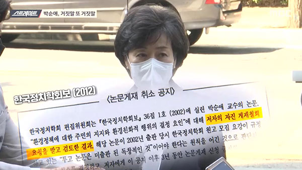 박순애의 3가지 해명, 모두 거짓입니다. <스트레이트>는 10년 전 박순애 서울대 교수가 한국정치학회에 제출한 소명서를 확보했는데, 이 소명서에서는 '논문 게재를 취소하지 말아달라'고 읍소하는 내용이 담겨 있다.