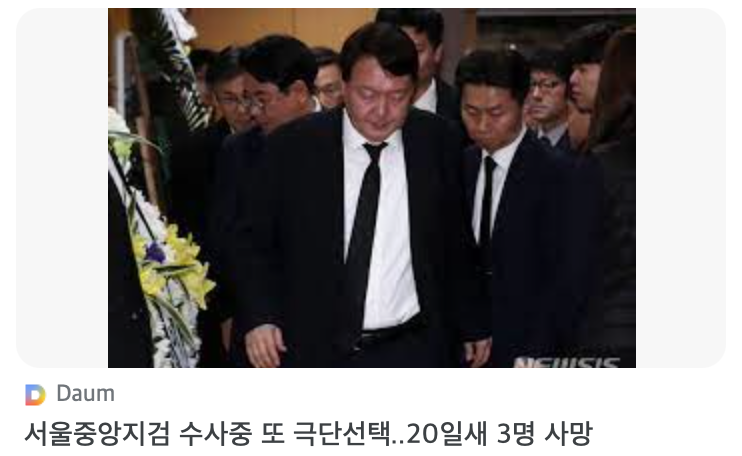 앞에서도 언급했듯이 검찰 수사 후 극단적 선택을 하는 경우는 검찰 공화국 대한민국에서는 흔히 볼 수 있다.