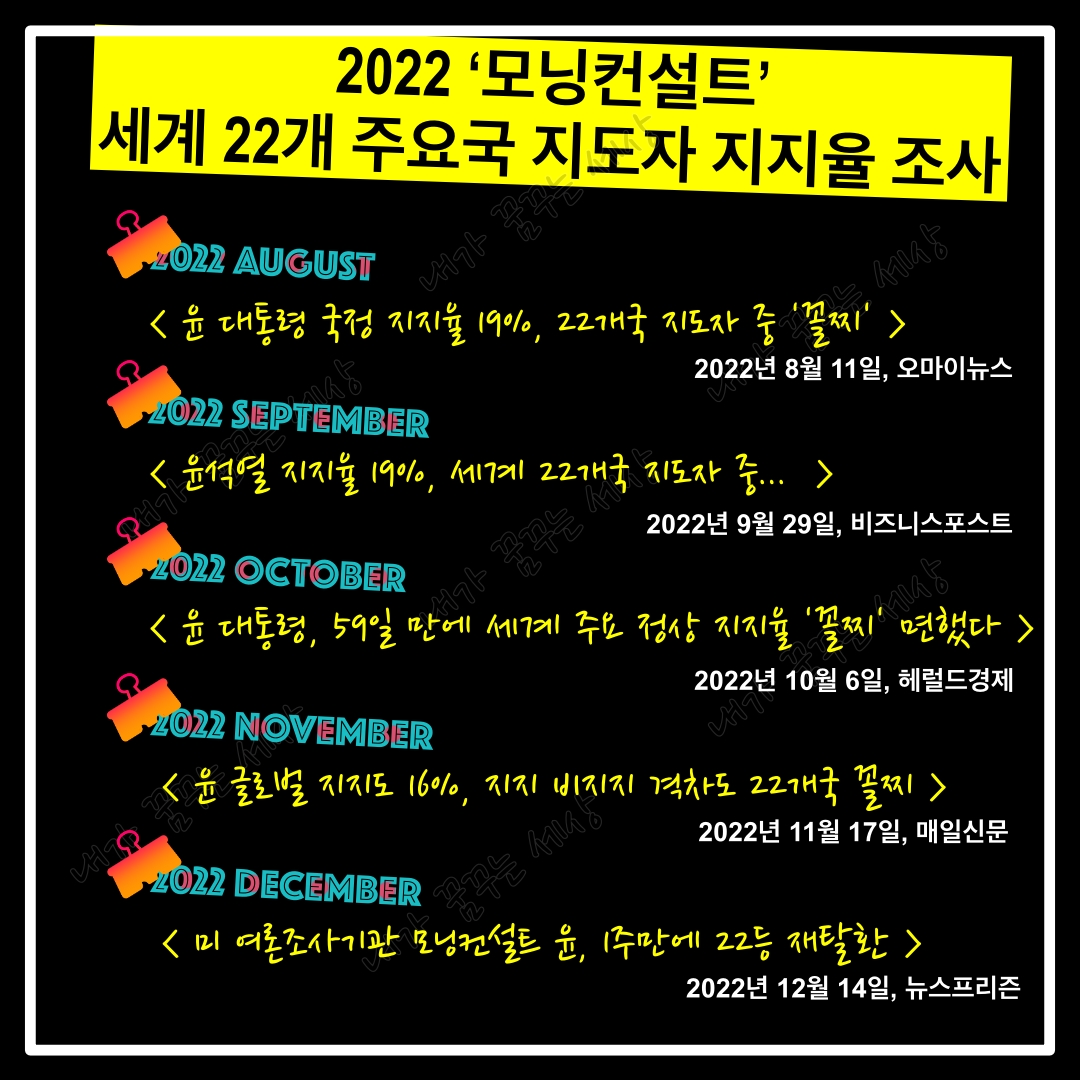 결국 모닝컨설트 여론조사에서 매번 꼴찌를 차지하는 윤석열의 지지율 역시 현재 대한민국의 민심과 다르지 않을 것이다.