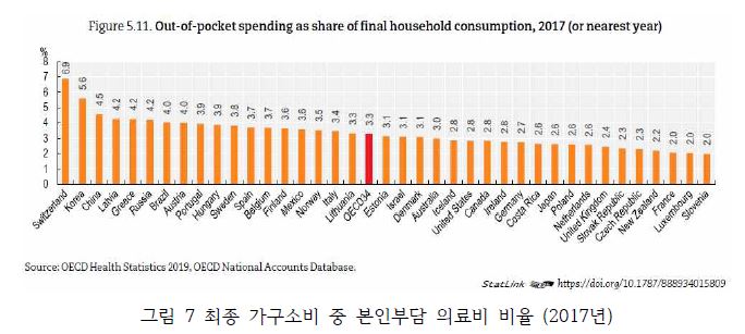 시사하는 지표이다. OECD는 민간의료중심 체계의 경쟁적 의료공급시장과 지불제도가 일으키는 과잉