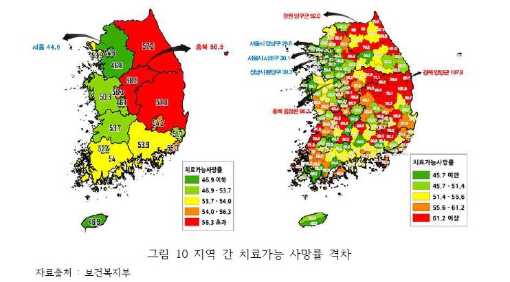 ‘치료 가능한 사망률(amenable mortality rate)’이 2015년 기준 인구 10만 명 서울은 44.6명, 충북 58.5