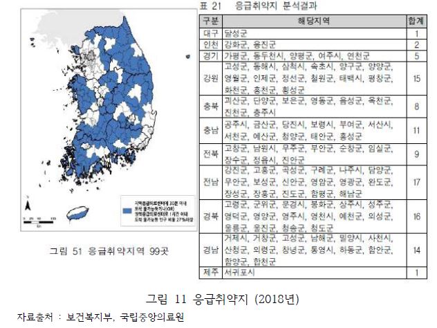 평균 4시간에 달한다. 정부에 따르면 현재 응급의료기관이 전혀 없는 시·군·구도 32개에 달하고,